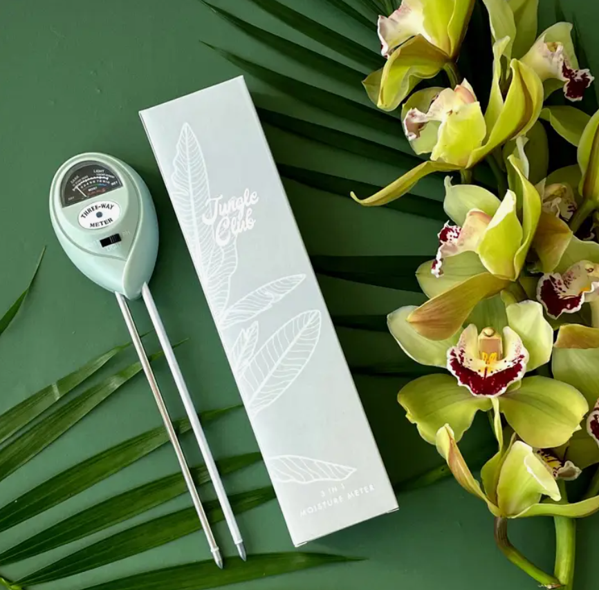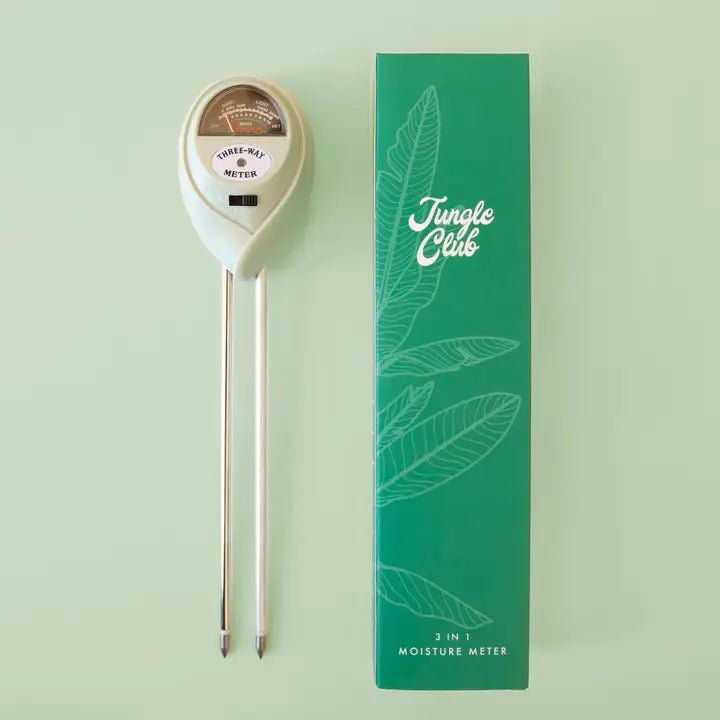 Make your plant happy and your life easier with our soil moisture meter.  No more guessing if plant is ready for a drink or not!  Our very own Jungle Club's Moisture Meter ensures the health and quality of your plants by helping you know when to water and how much. To use, stick the probe 2-4 inches into the soil and adjust until the dial swings.  After 10 minutes, note the moisture level in the dial.  Remove and wipe clean after use.