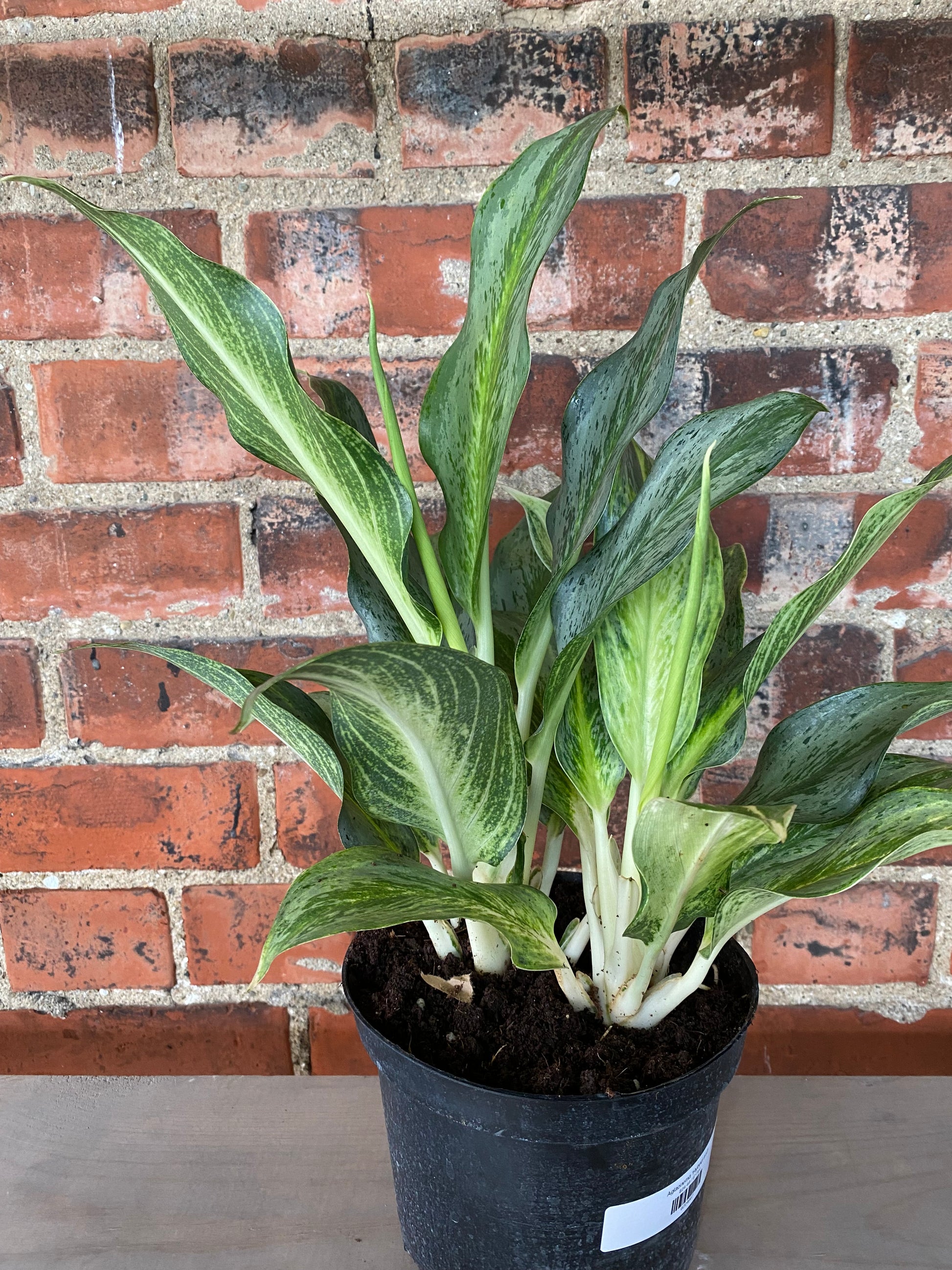 Aglaonema Hybrid #10 is a compact, slow-growing tropical plant with long, narrow leaves marked in deep green, mint, and yellow. It’s highly adaptable, tolerating low light but growing best in bright, indirect light.