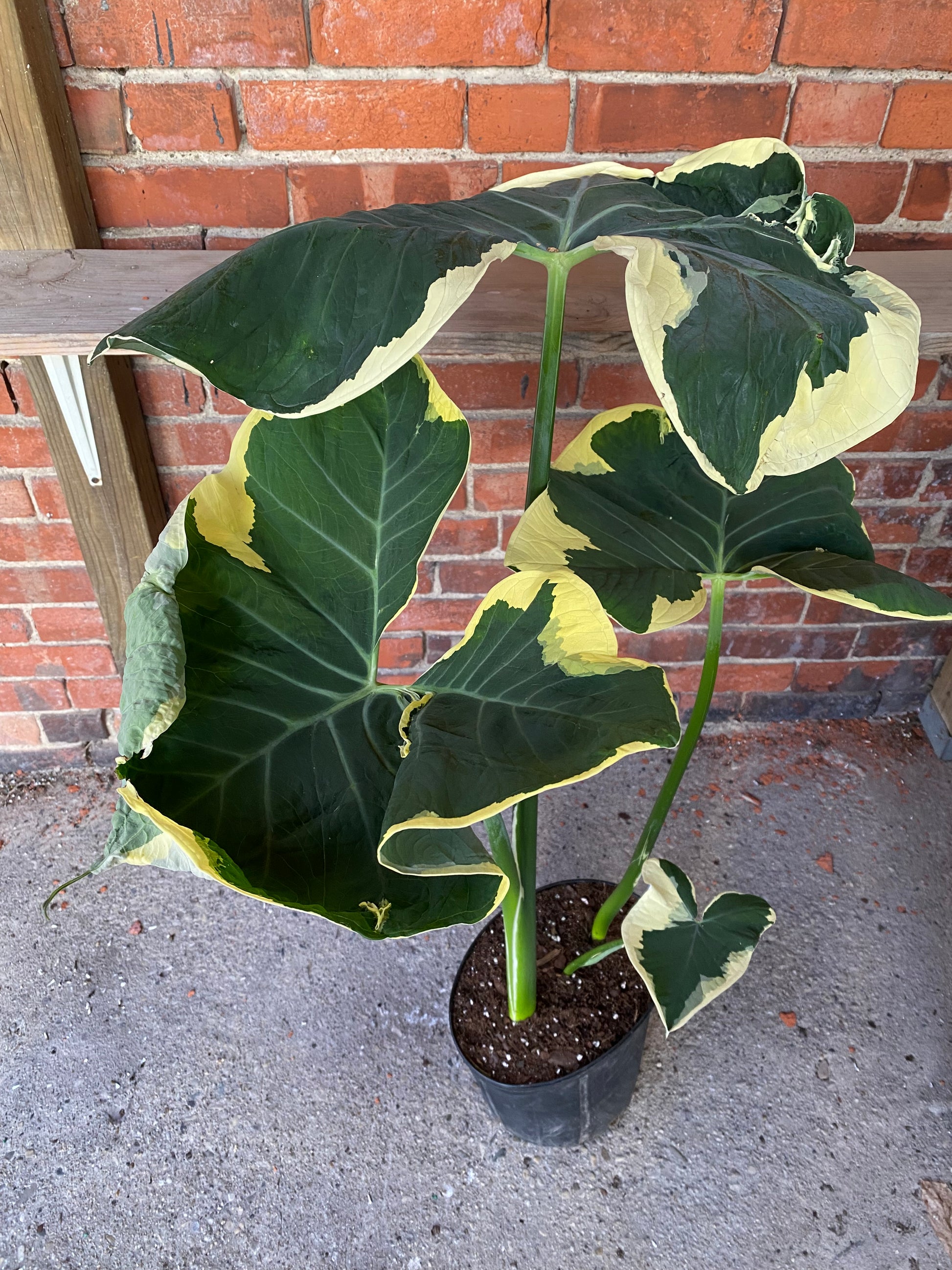 Alocasia "Mickey Mouse" boasts some of the most stunning variegated foliage within the Elephant Ear family. Its distinctive leaves, shaped like large lobes reminiscent of Mickey Mouse ears, terminate in a delicate, filamentous tip. This plant can exhibit dramatic shifts in appearance when its growing conditions are altered.