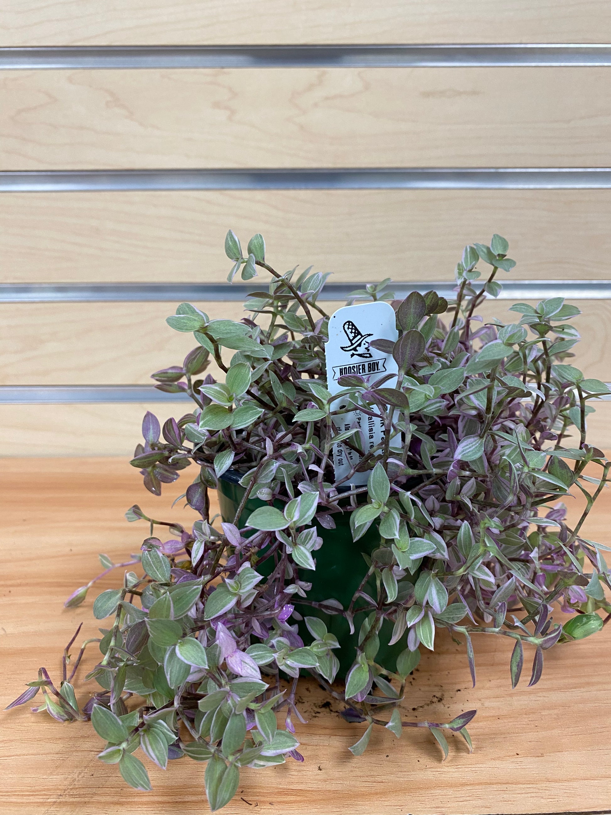 Callisia repens ‘Pink Panther’ forms dense, trailing mats of tiny leaves in shades of soft pink, cream, and green. Its compact stems spill over edges and create a textured, cascading look, making it a standout in small pots, hanging planters, or mixed arrangements.