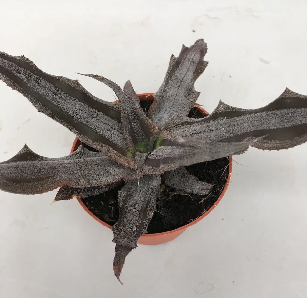 Commonly called Creme Brûlée Earth Star is an easy to grow houseplant forming rosettes of light brown and silver leaves. The leaves are succulent, with wavy margins and teeth. Small white flowers appear near the center of the plant.