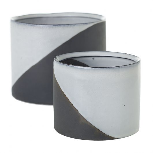 This simple yet stunning pot is crafted from black clay. The rim gets hand carved, then the dual glaze pattern achieved by isolating a section of the pot and dipping it in a white glaze, leaving the other side as natural exposed clay