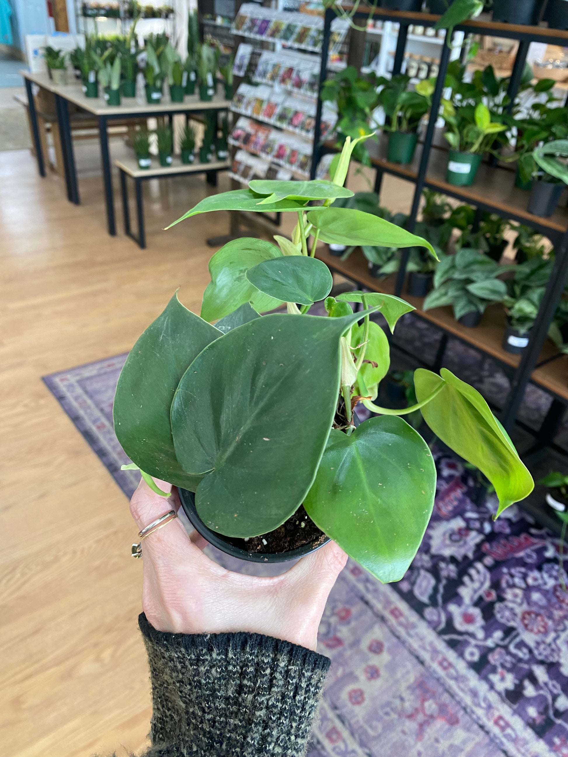 Philodendron Cordatum ‘Heart Leaf’ features glossy, heart-shaped leaves in a rich green that grow along flexible vines. Its vining growth habit makes it perfect for hanging baskets, shelves, or climbing supports, adding a charming, trailing accent to any indoor space.