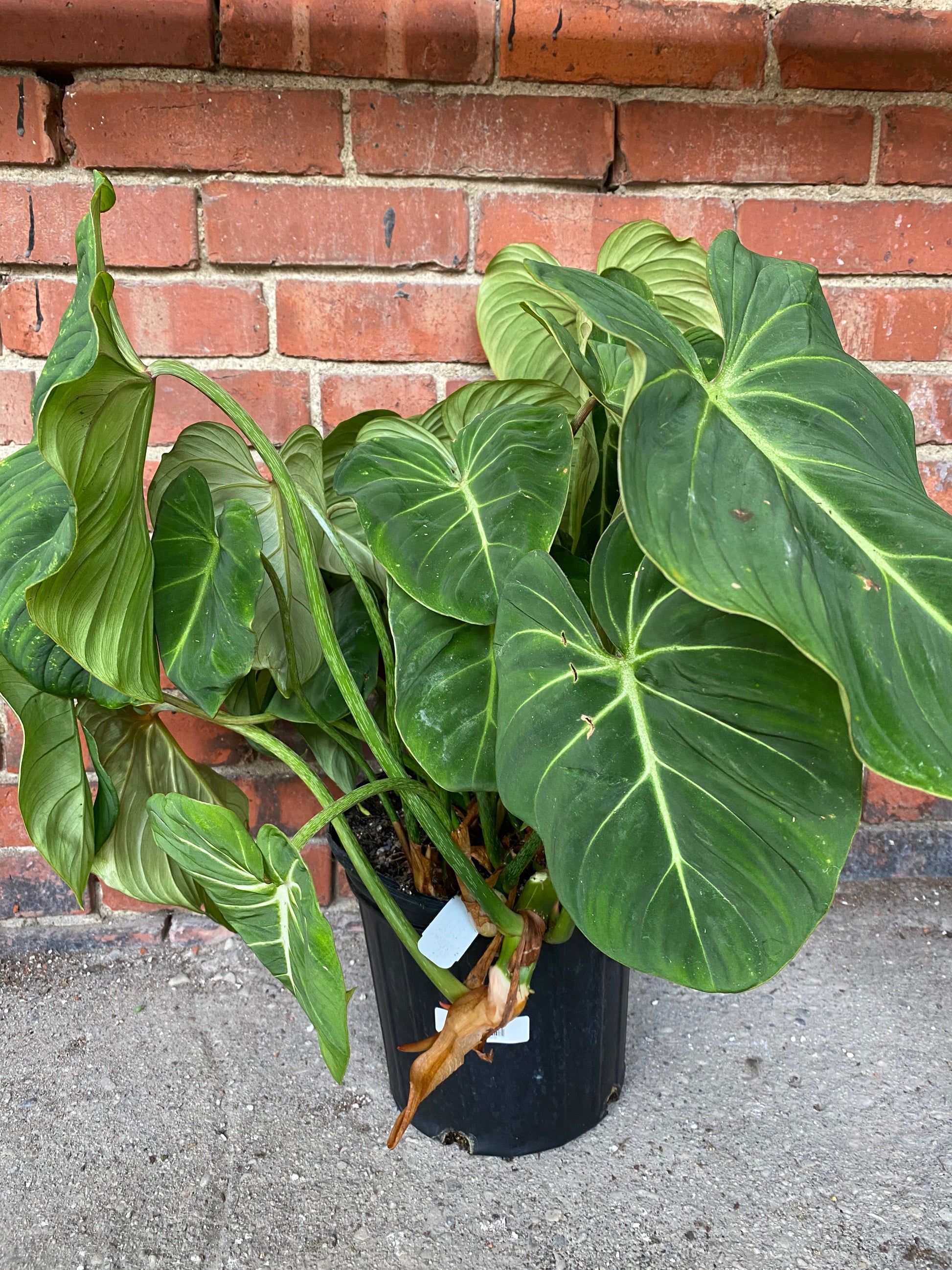 Philodendron gloriosum features large, heart-shaped leaves with velvety dark green surfaces and striking white veins, creating a dramatic, tropical look. Its slow-growing, terrestrial habit makes it ideal for tabletops, floors, or indoor gardens as a statement plant.