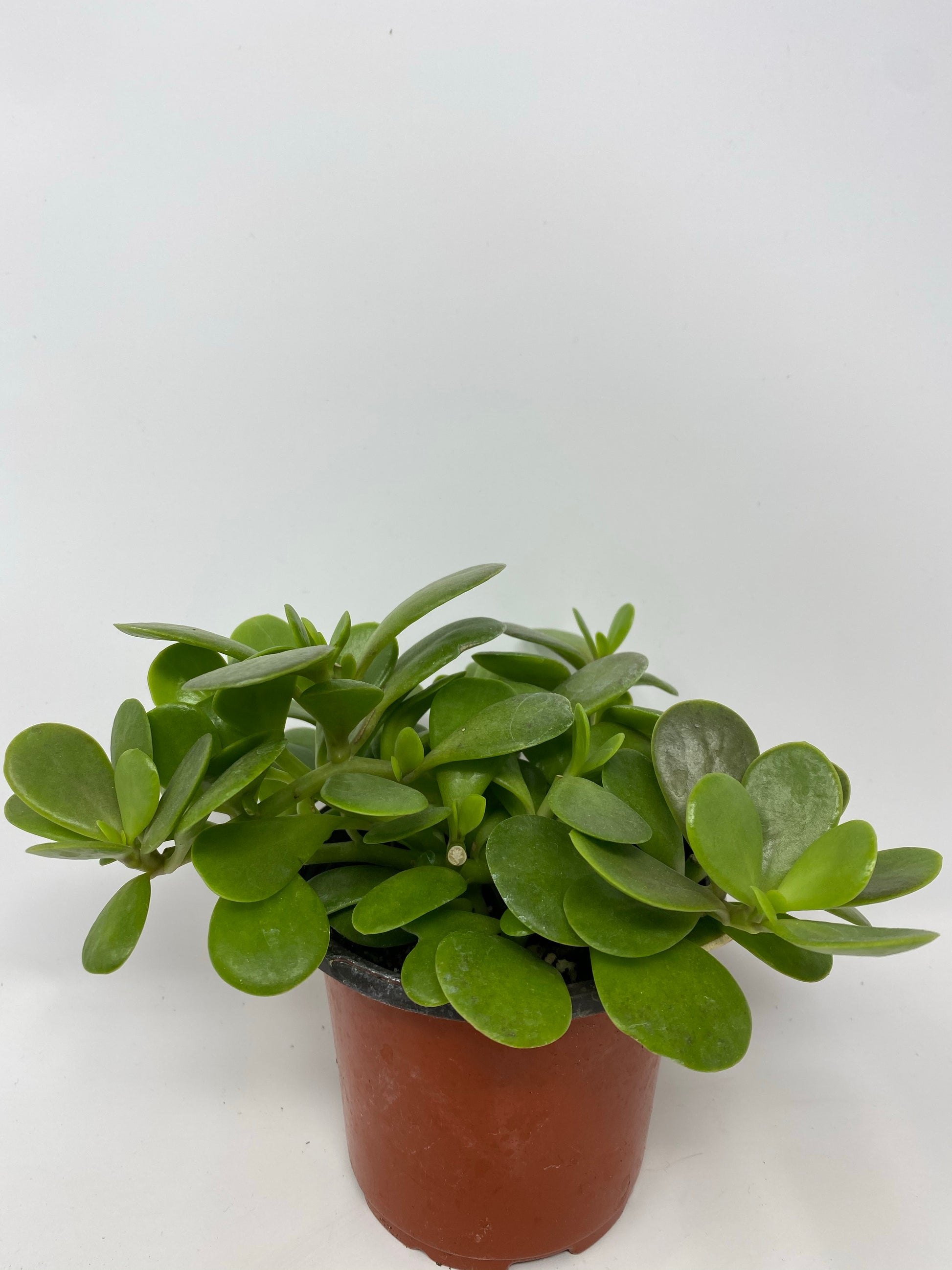 Bears a strong resemblance to the Crassula Jade but is in fact unrelated. Featuring succulent, thick stems and flat, egg-shaped leaves, trailing jade displays a creeping growth habit, forming a network of roots as it spreads along the ground.