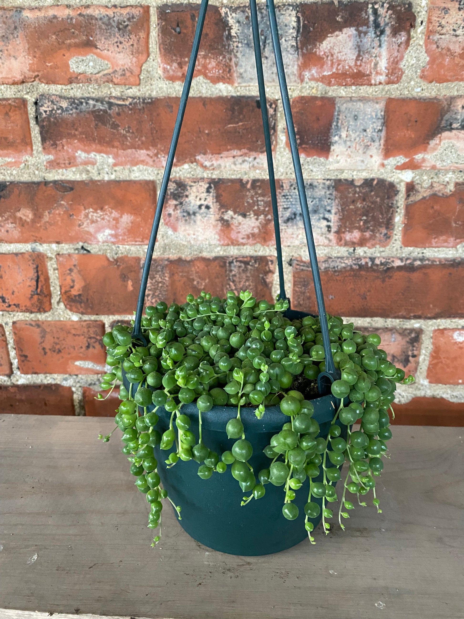 Strings of small, round, succulent beads trail off this unusual succulent. Senecio rowleyanus, looks great in a hanging basket where you can show off its trailing strands.